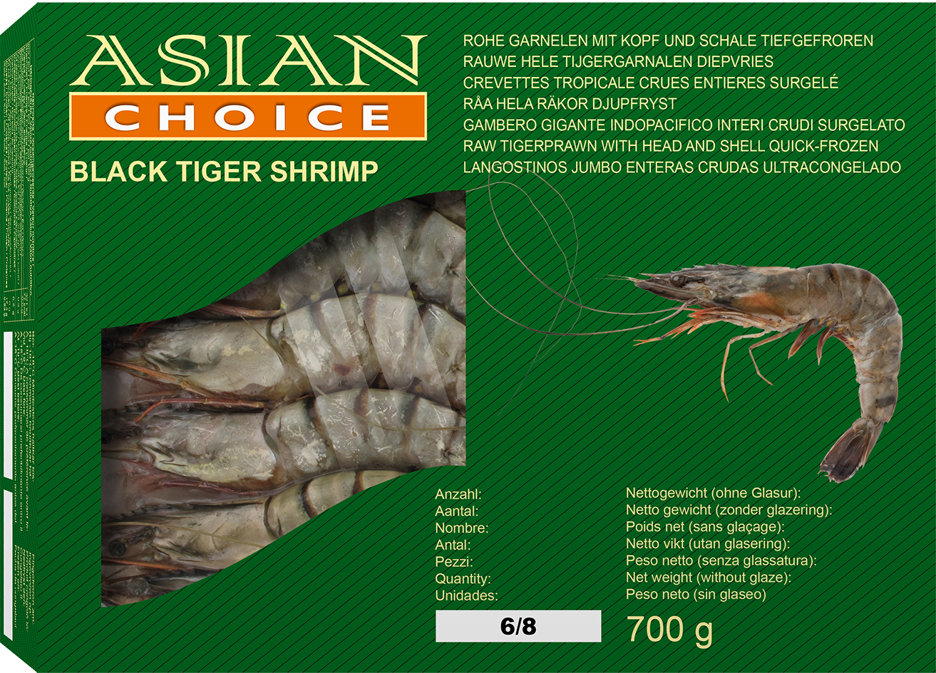 BT Garnelen 6/8 mit Kopf & Schale - Asian Choice - 700 g